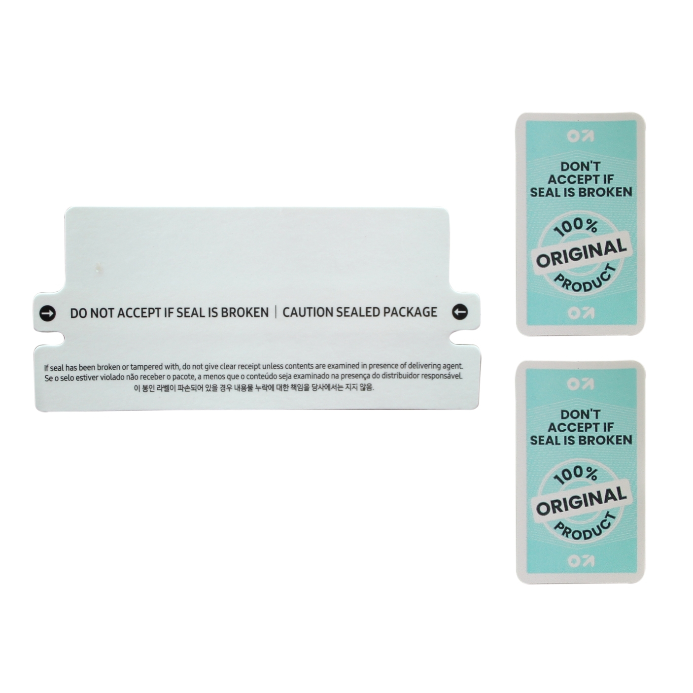 Options: Customised void-release materials, destructible vinyls, holographic features. Customisable sizes, specific security cuts, and forensic features.